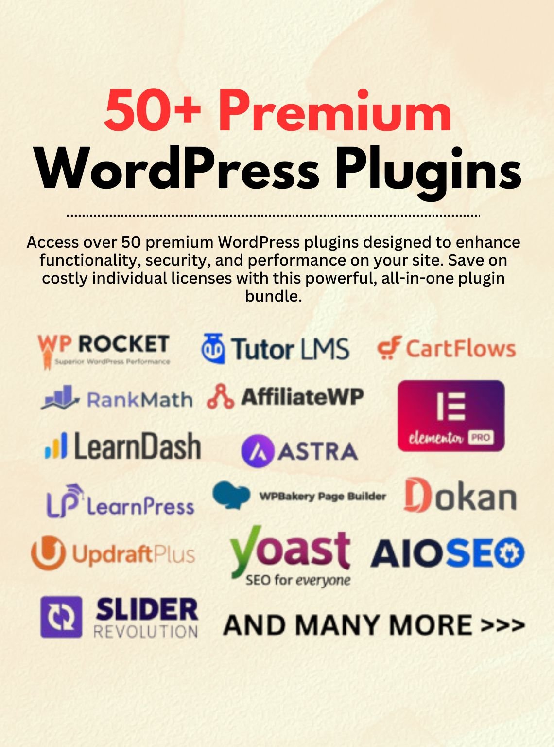 50+ Paid WordPress Plugins (Elementor Pro, Cart Flow Pro, etc)